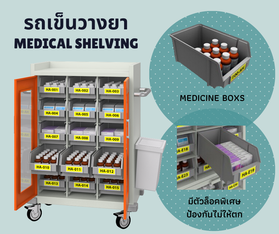 - เป็นรถเข็นที่ออกแบบมาเพื่อช่วยในการจัดสรรยาสำหรับผู้ป่วย ตามวอร์ดต่างๆ