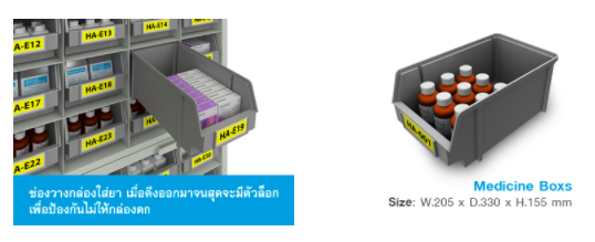 - ใส่กล่องยาได้ 15 กล่อง 3 แถว 5 ระดับชั้น